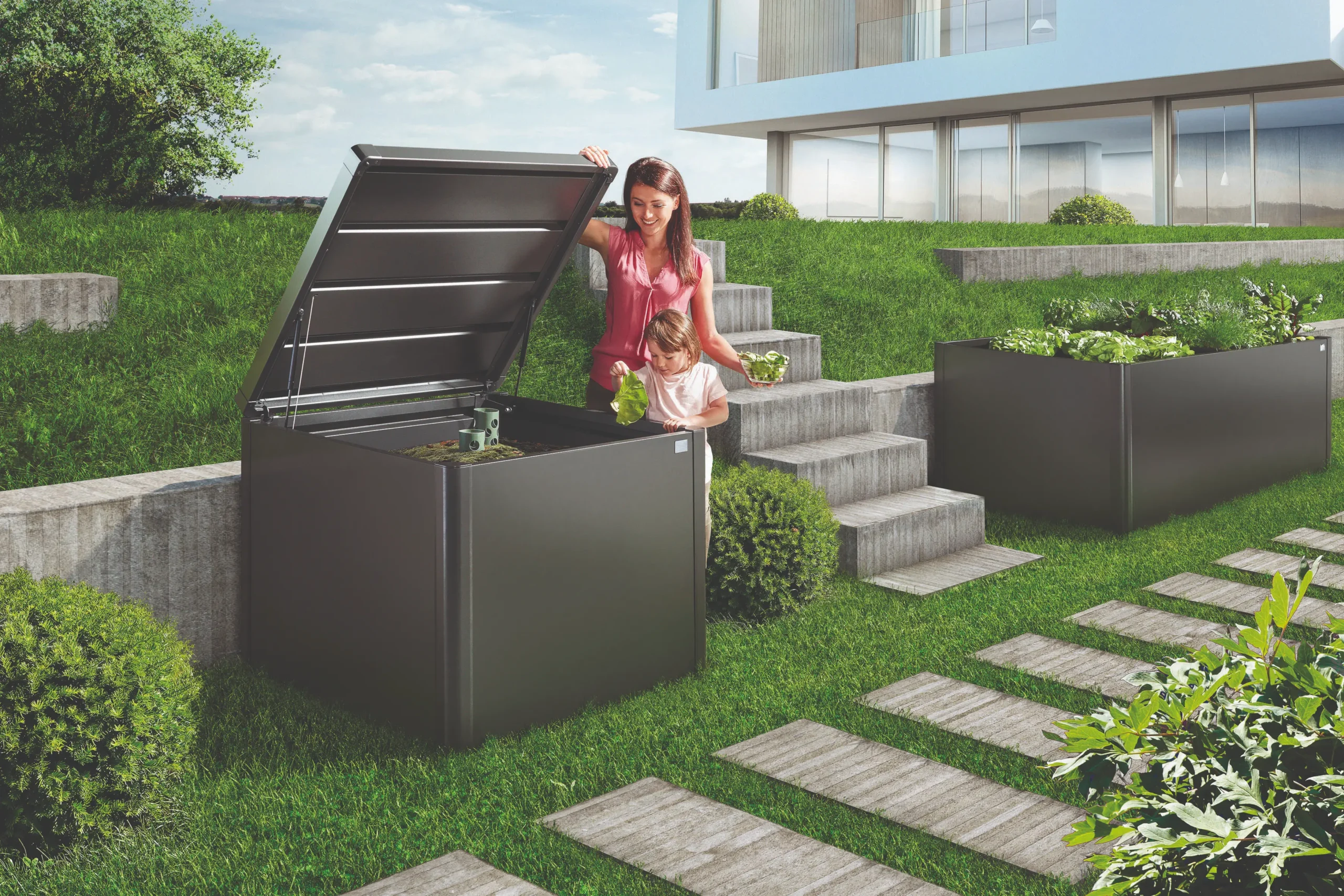 Como «mi amigo» en el jardín, la compostera MonAmi® combina funcionalidad con un aspecto elegante: superficies lisas por dentro y por fuera, con todo lo necesario para un compostaje eficaz. Dos tubos de ventilación situados en el centro crean un efecto chimenea y garantizan una circulación fiable del aire, mientras que el hueco circunferencial situado debajo de la tapa garantiza la transferencia del calor fuera de la compostera. ¡Ahora hasta el compostaje tiene buena pinta!