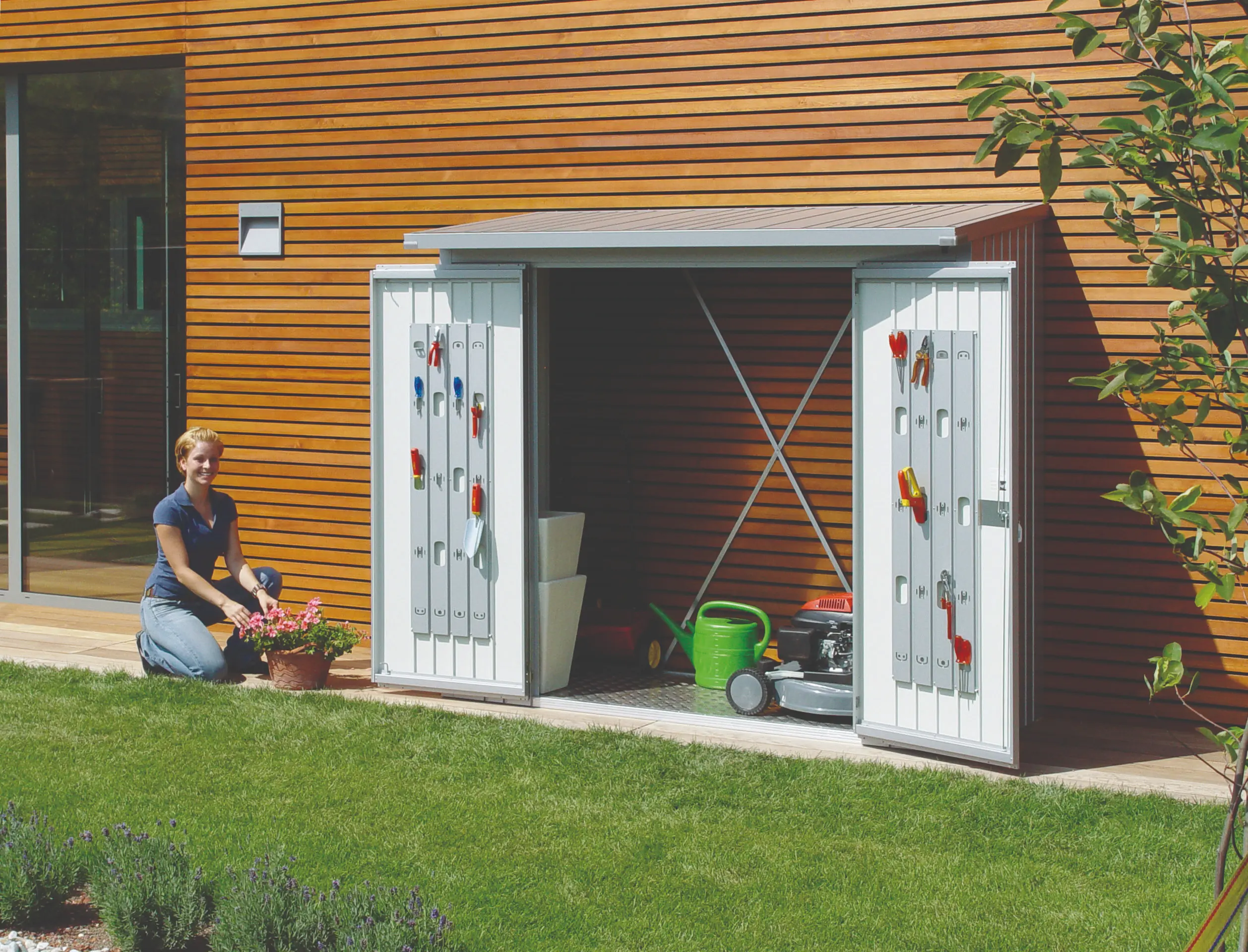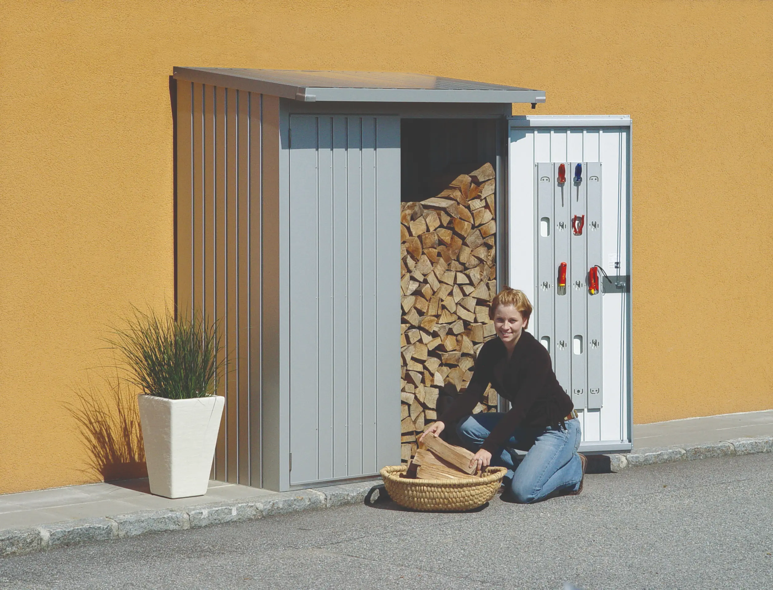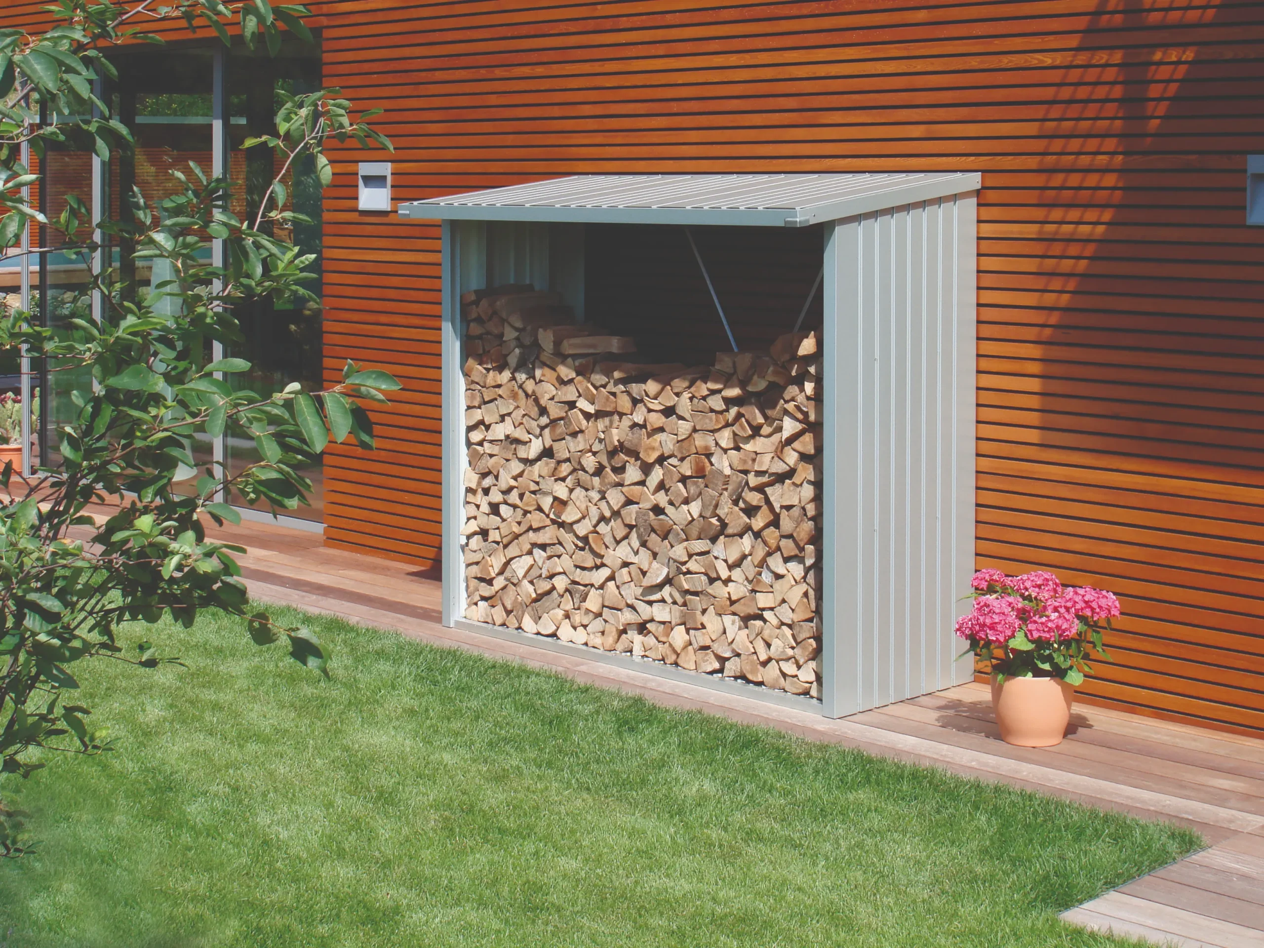 Nada evoca un ambiente más acogedor que un fuego ardiente en la chimenea en un frío día de invierno. Pero, ¿dónde guardar la leña? Nuestro leñero WoodStock® ofrece una solución limpia y duradera a este problema. Durante el verano ofrece mucho espacio para muebles y equipamiento de jardín. Se puede fijar fácilmente a la pared de la casa.